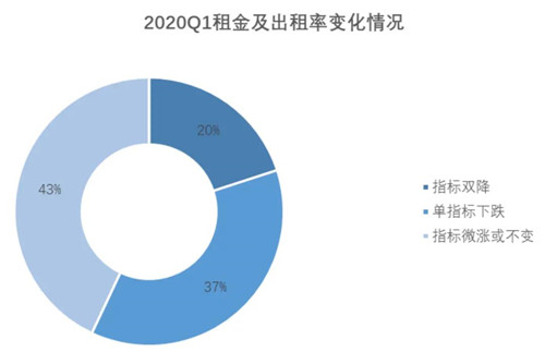 疫情影響下,一線城市57%的寫字樓項目出現(xiàn)了租金或出租率的下降,約20%的寫字樓項目甚至出現(xiàn)了租金及出租率雙降現(xiàn)象,但也有43%的寫字樓項目租金和空置率微漲或不變。