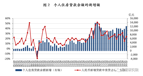 從全國人民幣新增貸款中個人房貸占比來看,2020年二季度,個人住房按揭貸款新增額占新增境內貸款比例為24%,環比增長9個百分點,同比下降4個百分點。同比來看,今年二季度個人房貸占新增貸款比例相比去年同期更低,主要是今年疫情發生以來,貸款主要投放在支持實體經濟和小微企業上。
