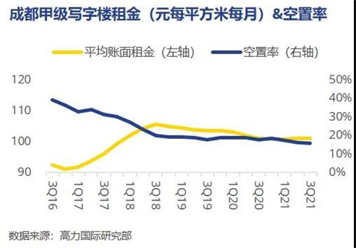 高力國際近日發布三季度成都寫字樓市場報告指出,三季度,成都寫字樓市場平均租金穩定,總體上環比幾近持平,報人民幣101.0元每平方米每月;全市空置率環比下降0.4個百分點至15.7%。