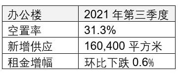 租賃需求活躍度略有回落,自用需求推動(dòng)市場(chǎng)穩(wěn)定去化。2021年第三季度,青島辦公樓市場(chǎng)整體凈吸納量約為15萬(wàn)平方米,其中超過(guò)三分之二來(lái)自自用型需求,帶動(dòng)整體空置率環(huán)比下降0.8個(gè)百分點(diǎn)至31.3%。受整體經(jīng)濟(jì)仍面臨下行壓力及疫情反復(fù)的影響,市場(chǎng)租賃活躍度在最近兩個(gè)季度都出現(xiàn)放緩態(tài)勢(shì),金融和能源類企業(yè)作為需求主力軍,表現(xiàn)依舊穩(wěn)定。