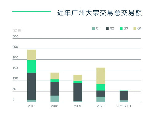 其中,寫字樓市場季度供應量創近四年新高,珠江新城近期錄得多宗金融企業大面積租賃成交,表現亮眼。零售物業市場加速走出疫情陰霾,新項目均獲得較理想的開業率,再加上市區項目進行租戶調整后迎來新品牌入駐,助推空置去化。倉儲物流設施市場連續第二個季度錄得跨境電商的大面積吸納,空置率創近五年新低,大面積單位甚至供不應求。大宗交易市場因廣州穩步推進舊城改造迎來新商機,新興商務區錄得寫字樓成交。