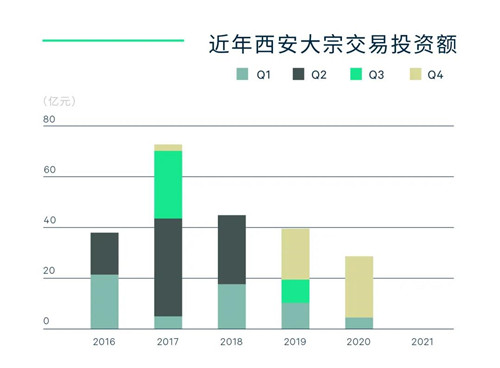 2021年第三季度西安市場未錄得大宗物業成交。在物業收購類型層面,由于具備穩定的投資回報、良好的升值空間等特征,寫字樓仍是最受歡迎的投資標的。隨著租賃需求持續增長,熱點區域的存量及在建寫字樓對投資和自用需求的吸引力將明顯增強。與此同時,西安商業地產的資產價格在過去幾年維持相對穩定,隨著西安“輕資產”輸出案例陸續落地,西安零售商業市場將更趨品牌化,專業化,刺激商業類項目的活躍度的提升,部分零售項目或將在調整中迎來新的投資機會。