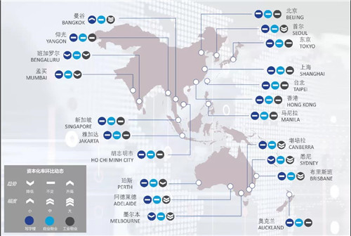 亞太地區工業物業投資需求依舊強勁。澳大利亞的工業物業市場資本化率環比降低約0.6%。曼谷、首爾、班加羅爾、孟買也有一定減幅。