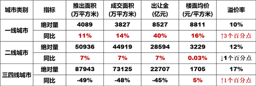 ▌各類市場:一線供需兩旺,二線收金上揚(yáng),三四線供求雙降