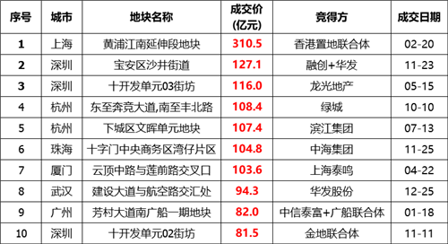 ▌住宅用地:榜單水平同比走高,一線城市宅地交易活躍