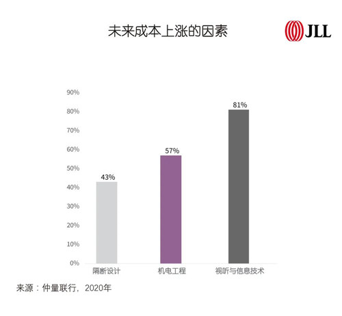 仲量聯(lián)行認(rèn)為,盡管總體的裝修成本依然保持上漲趨勢(shì),但這并不影響大部分企業(yè)對(duì)辦公空間的投資,以期為員工創(chuàng)造安全的工作環(huán)境,提升工作效率。雖然企業(yè)或?qū)⒅匦聦徱暺洳粍?dòng)產(chǎn)組合,但從建設(shè)企業(yè)文化以及吸引和留住人才的層面考慮,辦公空間仍將是不可或缺的。