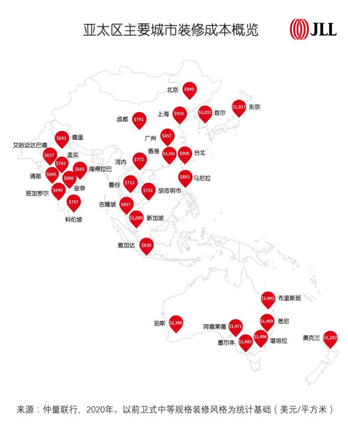 仲量聯(lián)行已連續(xù)多年發(fā)布亞太區(qū)辦公空間裝修成本指南。最新數(shù)據(jù)顯示,亞太區(qū)平均裝修成本同比上漲4.7%,勞動(dòng)力短缺、對(duì)健康安全的考慮以及對(duì)材料供應(yīng)和配送的擔(dān)憂導(dǎo)致的材料成本上漲是推動(dòng)成本上漲的主要因素。