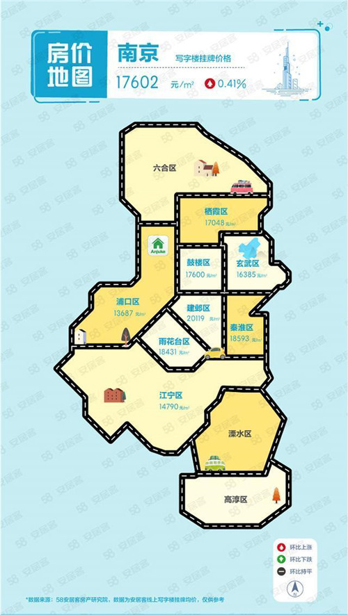 58安居客房產研究院統計數據顯示,四季度南京寫字樓掛牌價格達到17602元/㎡,環比上漲0.41%。分區域來看,建鄴區以20119元/㎡的掛牌價格排在首位,秦淮區以18593元/㎡的水平緊隨其后,浦口區13687元/㎡的掛牌價格處于相對較低水平。四季度武漢寫字樓掛牌價格為13669元/㎡,環比下跌5.51%。區域層面,武昌區以15908元/㎡的掛牌價格領跑其他區域,硚口區和江岸區緊跟其后,東西湖區以8809元/㎡的掛牌價格排在相對低位。