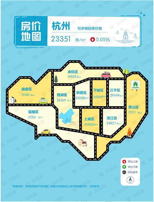 根據58同城、安居客《2020年Q4寫字樓價格地圖》顯示,新一線城市中,杭州寫字樓掛牌價格處于領先地位,南京排在其后;西安寫字樓掛牌價格環比上漲4.49%,在新一線城市中表現最為突出。杭州寫字樓掛牌價格為23351元/㎡,環比微漲0.05%。其中,江干區寫字樓掛牌價格達到29549元/㎡,領先其他區域,西湖區、濱江區和下城區寫字樓掛牌價格分別以26569元/㎡、24827元/㎡、24268元/㎡的水平排在江干區之后。蕭山區、上城區和拱墅區寫字樓掛牌價格也均超2萬元/㎡。