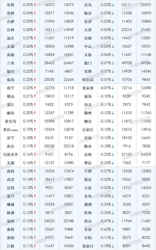 表:長三角部分城市新建住宅價格環(huán)比漲跌變化