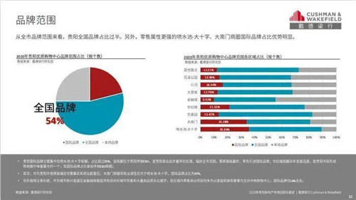 從全市品牌范圍來看,貴陽全國品牌占比過半。另外,零售屬性更強(qiáng)的噴水池-大十字、大南門商圈國際品牌占比優(yōu)勢明顯。噴水池-大十字商圈位于貴陽傳統(tǒng)CBD,是貴陽商業(yè)起步最早的區(qū)域,輻射全市范圍,客群基礎(chǔ)最好,率先引進(jìn)國際品牌;世紀(jì)城商圈近年發(fā)展迅速,是貴陽市現(xiàn)有成熟商圈中體量最大的一個,其國際品牌占比緊追噴水池-大十字商圈。