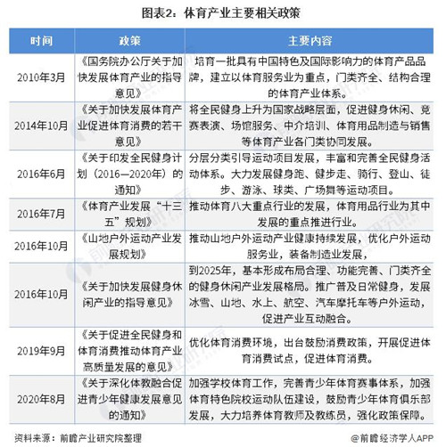 2010年以來,國家政策層面加大了體育產業扶持力度。2014年,國務院發布《關于加快發展體育產業促進體育消費的若干意見》,將全面健身上升為國家戰略層面;2016年,國務院出臺《關于印發全民健身計劃(2016—2020年)的通知》,預計到2020年中國體育消費規模將達到1.5萬億元。同時,發改委、體育總局等部門也陸續發布了相關政策支持體育產業體系完善健康產業發展。