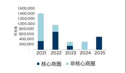 上海甲級(jí)寫字樓市場(chǎng)新增供應(yīng)動(dòng)態(tài)(根據(jù)核心/非核心商圈劃分)