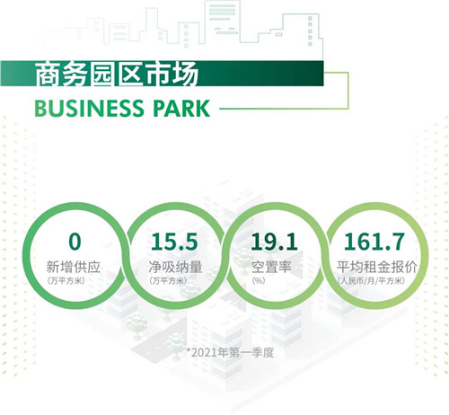 2021年第一季度,北京商務園區市場未錄得新增供應,個別原計劃入市的項目均推遲到今年年中交付。