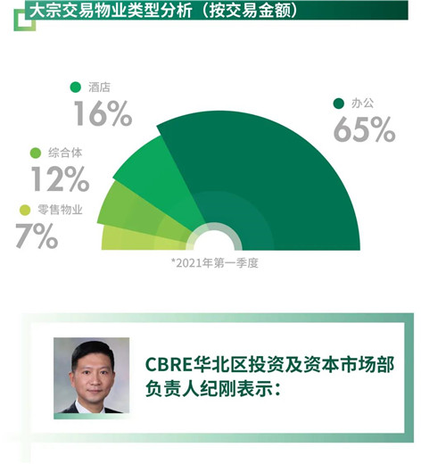 2021年第一季度,北京共達成十筆大宗交易,交易總額達209.1億元,環比和同比分別上漲40.0%和3.8%,交易活躍度進一步提升,并成為本季度全國交易額最高的市場。