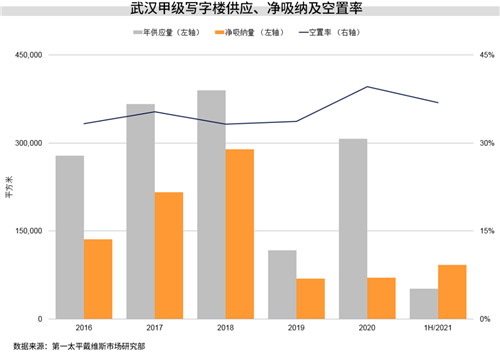 2021年上半年,武漢房地產市場持續強勁復蘇,寫字樓市場需求回暖,空置率下探。零售物業市場迎來多個地標性項目開業,首店經濟為市場注入新生活力。