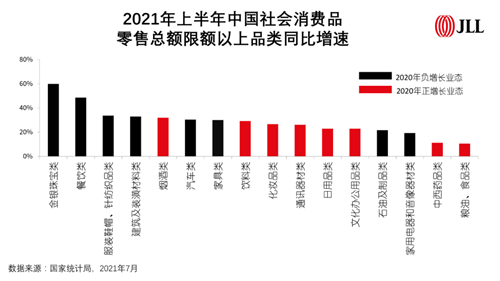 2021年上半年,中國社會消費品零售總額(社零總額)211,904億元,同比增長23.0%。4-6月,社零總額按月持續回升。五一長假、端午小長假、“618”網購狂歡節成為二季度拉動中國消費的關鍵觸點。消費加速回升,市場對消費端后市看漲的預期繼續增強。