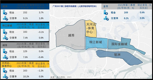 在2021年全年,廣州市場將迎來創記錄的超185萬平方米的新增供應量集中入市,其中大部分都集中在琶洲和金融城。若新項目能如期入市,空置率會在短期內出現暫時性的大幅上漲。高力國際中國區辦公樓服務部董事總經理嚴區海表示,我們預計下半年市場表現或將會呈現供需兩旺的情況,主要是以下三個原因:第一,從7月初開始,廣州疫情的陰霾開始逐步消散,市場帶看和談判活躍度已經開始恢復。第二,根據我們的觀察,市場中存在多個在談的大宗租賃交易,可以說整體市場大宗租賃需求依然非常充足。第三,在新增甲級寫字樓供應中,自用面積超過四成,部分項目已有一定的預租率,加上個別項目可能會延期入市,新增供應項目對市場的沖擊有限。因此,我們預計2021年末的空置率在理想情況下將有可能控制在15%以內。然而,快速高企的空置率確實會使租金承壓,同時隨著琶洲新項目的入市,低于市場平均水平的租金將使廣州甲級寫字樓平均租金面臨結構性下調壓力。未來隨著琶洲新項目的逐步去化,整體市場租金水平也會企穩回升。