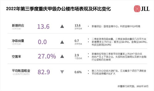 2022年第三季度重慶甲級辦公樓市場表現及環比變化