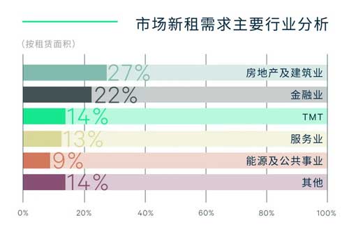 分行業(yè)看,房地產(chǎn)及建筑業(yè)、金融業(yè)和TMT行業(yè)主導季內(nèi)去化,分別占比27.5%,22.3%和14.2%。具體而言,季內(nèi),以建筑類企業(yè)支撐的房地產(chǎn)及建筑業(yè)主導新租需求。其中,以道路橋梁等交通建設(shè)類企業(yè)的升級需求為主導。都市圈的確立進一步加速了西安交通網(wǎng)絡(luò)的建設(shè)。據(jù)陜西省提出的目標,未來五年計劃完成綜合交通投資約5,000億元。其中西安今年在交通方面計劃完成投資超過150億元,一批新改建高速公路、功能完善干線公路及國道過境一級化的項目相繼提上日程。宏觀的利好信息激發(fā)基建類建筑企業(yè)需求的增長,隨著西安都市圈快速通勤網(wǎng)建設(shè)的提速,未來此類租戶的升級擴租趨勢將有所延續(xù)。其次,在西安連續(xù)出臺《關(guān)于促進股權(quán)投資行業(yè)發(fā)展的若干措施》、《西安市金融支持經(jīng)濟穩(wěn)增長工作措施》等一系列政策措施以優(yōu)化金融營商環(huán)境,打造“創(chuàng)投之都”的城市名片。借此契機,創(chuàng)投及融資類新興金融機構(gòu)的租賃需求出現(xiàn)大幅度增長,成為金融類企業(yè)租賃需求增長新動力?萍夹旅襟w需求較上季度有較大幅度增長,通訊類企業(yè)的新設(shè)立及擴租需求支撐季內(nèi)TMT類租賃需求的增加。在華為、中興等龍頭企業(yè)的帶動下,產(chǎn)業(yè)鏈上眾多知名企業(yè)持續(xù)進入西安或拓展西安市場,衍生大量辦公需求,逐漸成為TMT類租賃需求新動能。