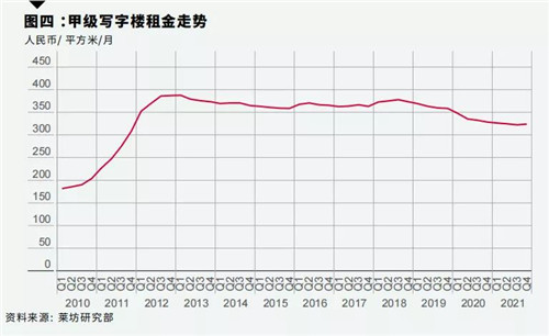 萊坊日前發(fā)布2021年第四季度北京甲級寫字樓市場報告顯示,第四季度,北京甲級寫字樓市場平均租金止跌反彈,環(huán)比上升0.6%至每月每平方米324元,全市新增甲級寫字樓面積122010平方米。市場需求持續(xù)回暖,全市平均空置率環(huán)比下降1.6個百分點,凈吸納量297580平方米。