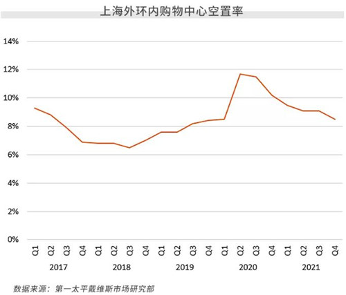 全年平均租金累計上漲1.3%至26.5元,空置率同比下降1.7個百分點至8.5%,自疫情后連續七個季度保持下降趨勢,上海零售市場入駐率基本恢復至疫情前水平。休閑娛樂、汽車、運動及戶外在2021年品牌租賃需求提升顯著,為上海購物中心面積中整體占比同比增長前三位。