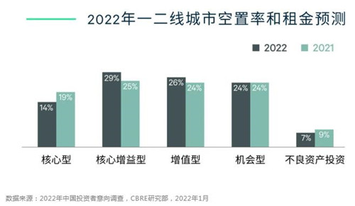 投資策略方面,核心增益型和增值型仍最受投資者青睞。增值型投資是大多數地產基金的主要投資策略。高技術產業集聚城市的商務園區改造提升、將酒店改造為長租公寓、老舊倉儲設施的升級等都是采用這一策略的投資者可以關注的選項。而大部分機構投資者仍然青睞核心型和核心增益型策略。世邦魏理仕認為,2022年機構投資者將面臨眾多優質的投資選擇,包括一線都市圈及物流樞紐的成熟物流資產包、一線城市核心區位的寫字樓和商務園區,以及與運營商合作進行購物中心和長租公寓投資等。
