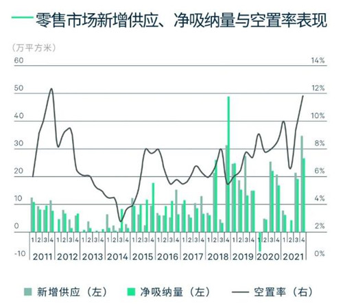 2021年鄭州寫字樓核心區域市場錄得新入市項目13.7萬平方米,非核心區有部分舊改項目入市,市場總量近435萬平方米。其中甲級寫字樓體量近198萬平方米。全年寫字樓租金上半年穩中有升,市場回暖,受第三季度洪水及疫情的自然因素影響,租賃市場漸入窘境,租金回落,較2020年相比,全年租金僅小幅上調2%。全年租賃市場以保險、信托類金融、科技新媒體、建筑類、互聯網相關科技類租戶為主仍積極擴租或新租辦公場所。但因在線教培行業大面積退租,房地產行業進行辦公資源整合,造成甲級辦公樓市場空置率上升5個百分點,至19.6%。受整體經濟環境影響,租賃市場活躍度緩慢恢復周期較長,租賃客戶選擇房源更加謹慎,甲級賬面租金下調8.6%,乙級寫字樓報價租金下調0.7%,空置率提升明顯。