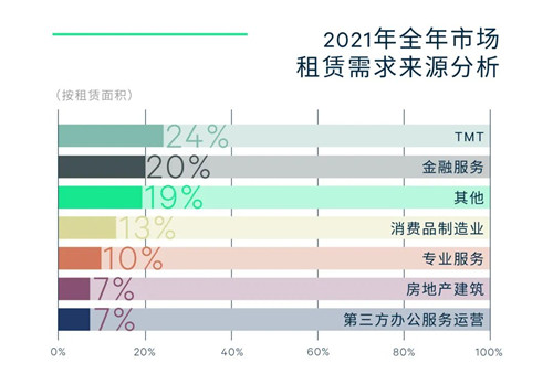 在行業(yè)表現(xiàn)方面,第四季度錄得的成交中,位列面積占比前四名的第三方辦公空間、TMT、消費品制造業(yè)和金融業(yè),占全部成交的77%。其中,第三方辦公空間和金融業(yè)分別位列琶洲和珠江新城成交占比的首位。全年來看,TMT、金融業(yè)和消費品制造業(yè)占據(jù)全市成交前三位,分別占比24%、20%和13%。