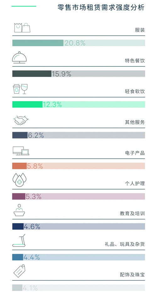 在品牌動態(tài)方面,從第四季度主要商場錄得的新開店鋪數(shù)量來看,服裝、特色餐飲和輕食軟飲的占比分列前三,與全年的趨勢一致。四季度,專業(yè)運動品牌迪桑特、護膚品牌嬌韻詩和日本買手店Studious Tokyo都在廣州開出首店。年末,國外知名個人美妝護膚品牌Tom Ford、YSL、雅詩蘭黛、Bobbi Brown、LA MER和蘭蔻,也走出天河路,首進珠江新城。另外,新能源汽車仍然表現(xiàn)活躍,在第四季度開出12家新店鋪,全年共有43家店鋪開業(yè)。