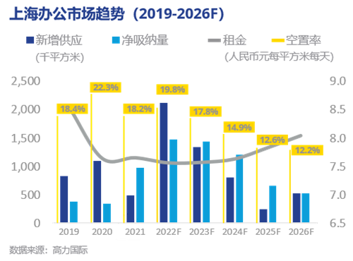 2021年,上海市甲級(jí)寫(xiě)字樓租賃需求強(qiáng)勁,全年凈吸納量是2020年的近3倍,助推租金在年內(nèi)觸底反彈。