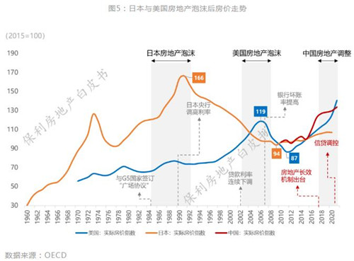 辯證來看,2021年的行業調控是必要的。以史為鑒,日本、美國等房地產市場缺乏有效調控,市場的非理性高熱釀成危機,20世紀90年代日本房地產泡沫破裂導致日本經濟“失去了20年”,2008年美國房地產次貸危機引發全球金融海嘯。我國出臺房地產長效機制以來,調控政策有效化解了房地產和金融風險。經過本輪調控,“我國房地產泡沫化金融化勢頭得到根本扭轉”。風險化解過程中,個別高杠桿企業出現暴雷,區域市場出現深度調整,但整體上來說,局面仍是可控的,本輪調控用局部代價換取整體最大平穩。