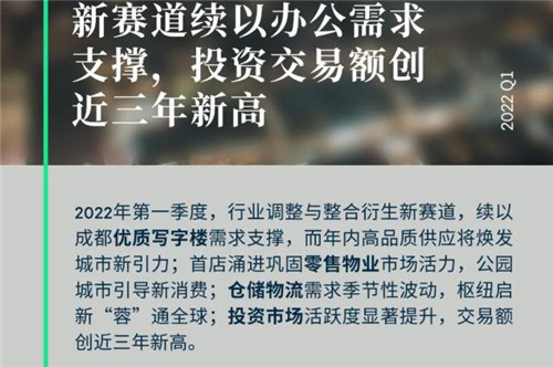 展望未來,2022年成都優質寫字樓市場預計將迎來約50平方米的新增供應,其中超九成為甲級寫字樓,且包含數棟位于核心商務區的標桿項目,高品質樓宇有望作為成都招商引資的載體吸引更多優質企業來蓉發展。另一方面,隨著成都大力實施產業“建圈強鏈”行動,先進制造業獲以高質量發展新動能,繼而帶動工業互聯網、生物醫藥、金融業、物流會展等行業在未來衍生更為強勁的辦公需求。
