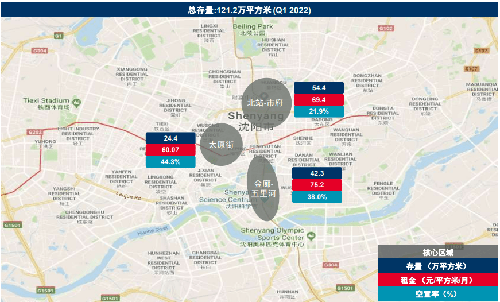 2022年第一季度,沈陽零售市場無新增供應,全市優質零售物業總存量數據約為541.5萬平方米。