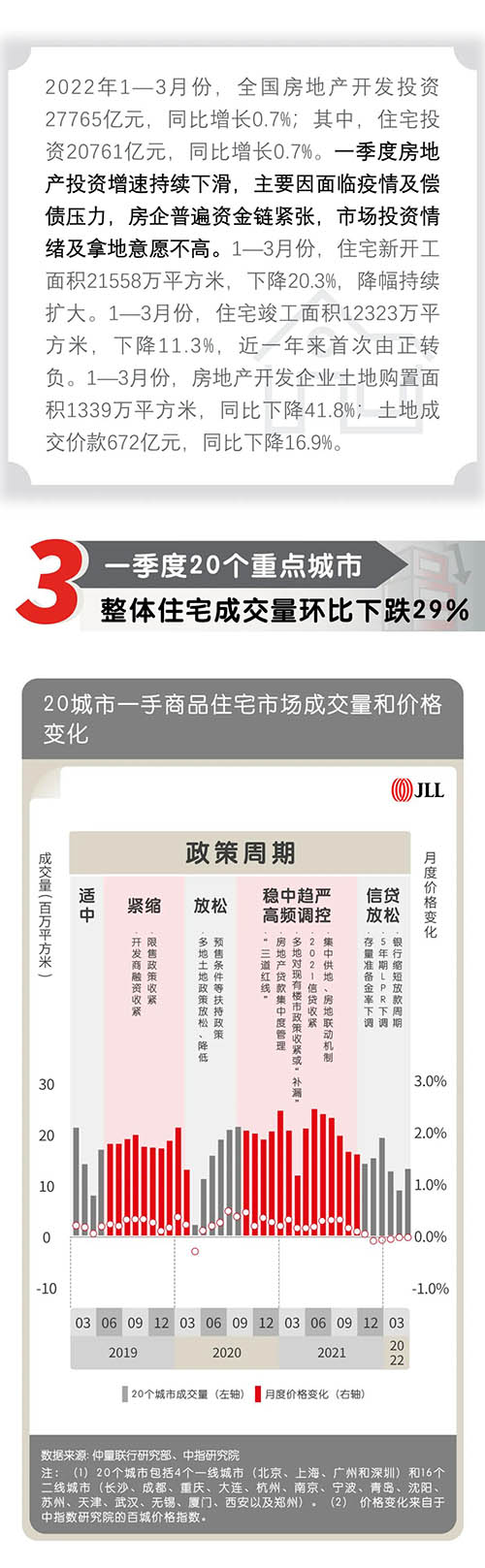 一季度,中國住宅市場政策端、信貸端、貨幣端等多方面迎來邊際放松,整體住宅成交規(guī)模持續(xù)環(huán)比下跌趨勢,房企拿地?zé)崆椴蛔悖僚氖袌霰3值蜏亍?/P>