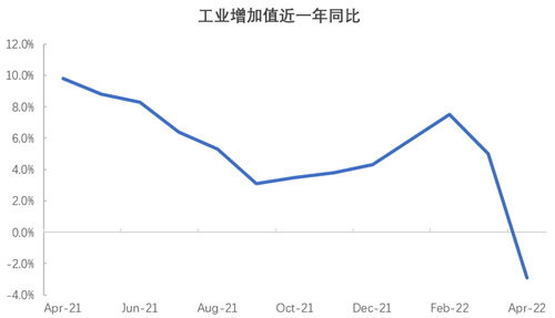 在嚴峻的疫情防控形勢下,國內工業生產增加值由增轉降,同比下降2.9%。三大門類中,采礦業增加值同比增長9.5%,電力、熱力、燃氣及水生產和供應業增長1.5%,較三月相比,增速均有一定程度回落;制造業下滑明顯,同比下降4.6%,增速直接跌為負。