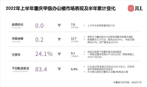 仲量聯(lián)行重慶總經(jīng)理劉洋表示:“上半年,疫情反復(fù)令經(jīng)濟(jì)承壓,產(chǎn)業(yè)辦公增量需求回落。但重慶宏觀經(jīng)濟(jì)仍具韌性,汽車及其配套產(chǎn)業(yè)、航運(yùn)物流等產(chǎn)業(yè)仍釋放積極信號(hào)。隨著近期一攬子穩(wěn)增長紓困政策效果逐步顯現(xiàn),下半年產(chǎn)業(yè)招引、旅游消費(fèi)將有望迎來復(fù)蘇,為下游商業(yè)及工業(yè)物流地產(chǎn)需求注入新動(dòng)能。”