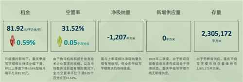 重慶甲級(jí)寫(xiě)字樓二季度主要指標(biāo)
