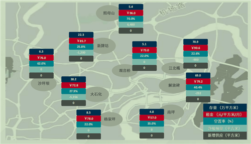 重慶甲級(jí)寫(xiě)字樓分區(qū)表現(xiàn)