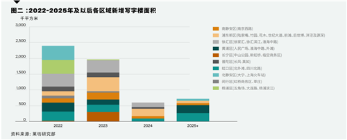 第二季度上海甲級寫字樓市場共有兩個新項目竣工交付,為市場總計帶來123,682平方米的寫字樓面積。6月,位于徐匯濱江的星瀚廣場竣工交付,作為星揚西岸中心的二期項目,寫字樓建筑面積約為80,612平方米。5月,位于新靜安蘇河灣區域的龍盛福新匯竣工交付,寫字樓建面約為43,070平方米。由于受到疫情的影響,不少計劃入市的項目均延期至下半年或者明年交付。預計未來兩年,每年都將會有超過150萬平方米的辦公項目交付,對于樓宇業主以及寫字樓市場都會存在去化壓力。