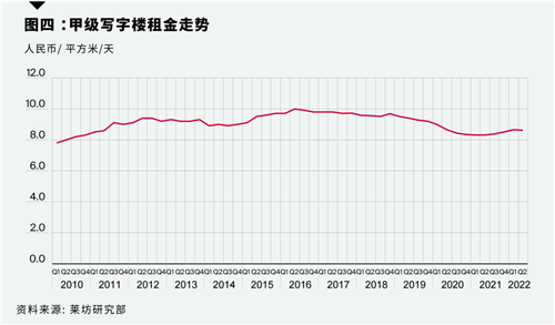 萊坊上海商業物業服務部主管李章南表示,第二季度,大部分分市場受到疫情掣肘影響,市場租金環比均有不同幅度下滑。北外灘、前灘、徐匯濱江以及世紀大道等熱點市場的市場租金在第二季度均錄得0.6%左右的平均降幅。不過核心商務區依然表現出較為強勁的市場韌性,在金融機構、外資律所及咨詢機構等高租金支付能力行業的支持下,市場租金仍有0.3%的微漲。