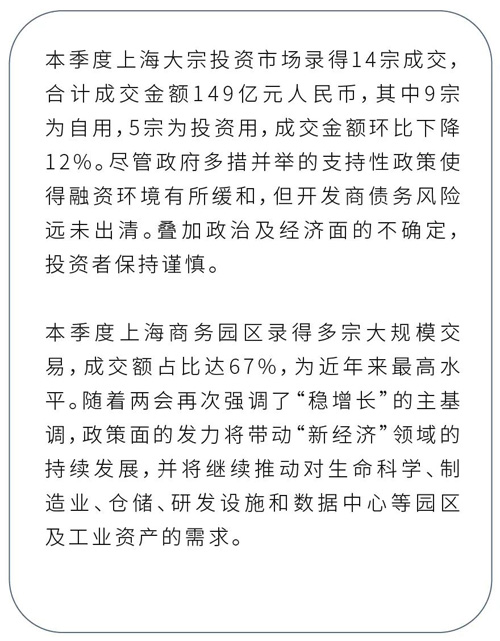 隨著清零政策取消,租賃問詢明顯增加。企業希望通過評估實際情況以制定未來計劃,并采取擴張、搬遷或削減成本的措施。情緒回升、銷售回暖及政府支持也鼓舞了零售商,但反映在吸納量及出租率改善上還需要時間,或在下半年才能有更為顯著表現。雖有新增供應推高空置率,但物流需求仍保持穩定。而受到季節性因素和就業群體返滬利好影響,住宅租賃市場較為活躍。