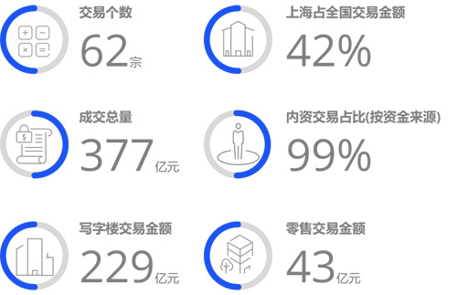 上海2025年前三季大宗成交62筆,成交總金額377億元。