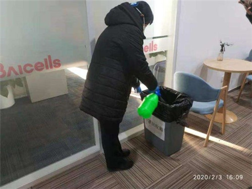 2月3日,園區小部分企業復工后,園區物業服務中心第一時間走訪企業,加強復工企業防疫提示和監管工作。提示辦公區窗戶通風,協助企業進行室內消毒,為員工演示口罩佩戴方式方法,并對企業產生的防疫廢棄物品進行專項管理,每日16:00由物業公司統一回收處理。