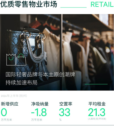 需求方面,本季度市場(chǎng)近需求近四成來(lái)自于中餐、各類甜點(diǎn)面包與茶啡店為代表的餐飲品類,期內(nèi)錄得包括柿圓、葉馬、敏華冰廳、FADAJE法大吉面包和WenTinG半糖蛋糕等品牌積極布點(diǎn)。時(shí)尚服飾業(yè)態(tài)占比24%,以輕奢、設(shè)計(jì)師品牌和運(yùn)動(dòng)戶外品類較為活躍。CELINE精品店與Maison Margiela杭州第二家于萬(wàn)象城揭幕,Tory Burch與ON跑于嘉里中心開(kāi)業(yè)。此外新能源汽車持續(xù)布局線下渠道,上半年蔚來(lái)分別在萬(wàn)象城、龍湖濱江天街與嘉里中心拓店。而隨著小米SU7正式上市,小米之家汽車體驗(yàn)店,浙江首店在拱墅大悅城正式亮相,門(mén)店設(shè)置有車輛產(chǎn)品展廳、3C產(chǎn)品展示和多功能區(qū),實(shí)現(xiàn)了小米“人車家全生態(tài)”的升級(jí)。截至季末,全市空置率小幅上升至3.3%,環(huán)比上升0.2個(gè)百分點(diǎn),同比上升0.6個(gè)百分點(diǎn)。