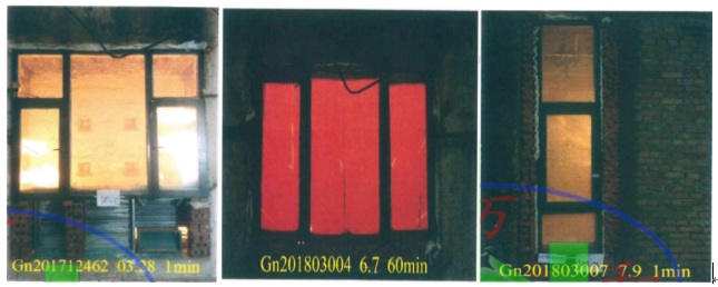 (青島萬和測試塑鋼耐火節能窗耐火試驗中1min和3min背火面煙霧變化,經多次試驗結果均未合格)
