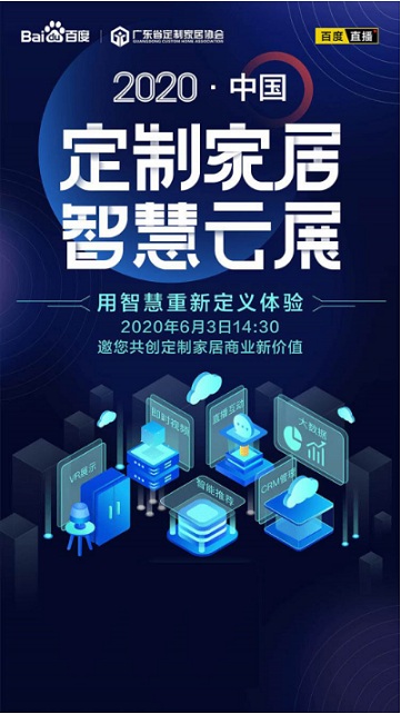 伴隨著互聯網的快速發展,數字經濟正顯現出蓬勃活力,云計算、大數據、5G以及人工智能、三維展示等新技術的發展及應用,給線上展會帶來了嶄新機遇。為助推中國定制家居行業發展,借助“互聯網+直播”的東風,助力定制家居企業,百度深圳分公司聯合廣東省定制家居協會于2020年6月28-7月12日在線上舉辦“2020中國定制家居智慧云展”。