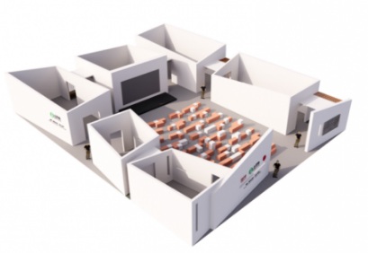 其實場地效果圖,可以體現(xiàn)此次灣區(qū)·城市設(shè)計展的理念——場館整體就好比是一個村落,每個設(shè)計空間代表著一戶人家,而中間的場地代表了公共活動空間,用作交流切磋各自的想法。