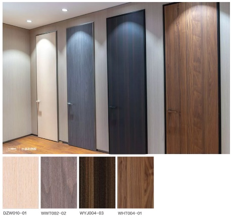 三棵樹小森科創飾面板運用在木門上,產品耐光色牢度可以保證達到6級以上,正常使用10-15年不明顯變色,解決了行業“變色”痛點,為消費者帶來高品質創新產品和美好生活享受。