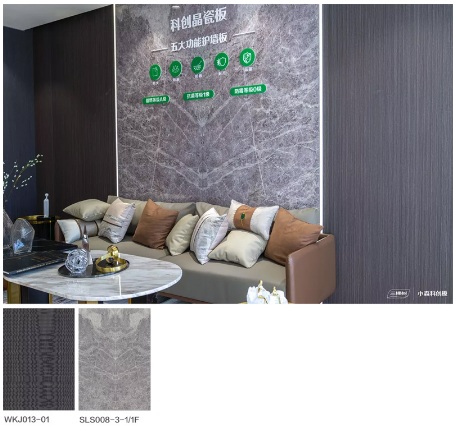 三棵樹小森科創晶瓷板1220x2440mm以上大板規格,相較于石材和瓷磚更輕便,輕松實現一板到頂;色彩多變、性能穩定,能夠呈現出多種裝飾效果,不僅滿足人們對環保家居方面的需求,還能展示出用戶專屬個性品位,美觀實用。